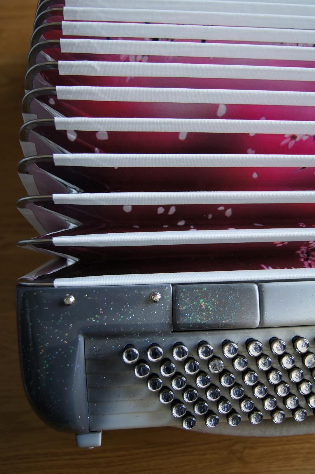 Particularities: extra built-in microfones (HDS Pro.Micro.System), special manufacturing with own design (bellow, color, glitter, buttons) double choir in casotto (16`+16´)